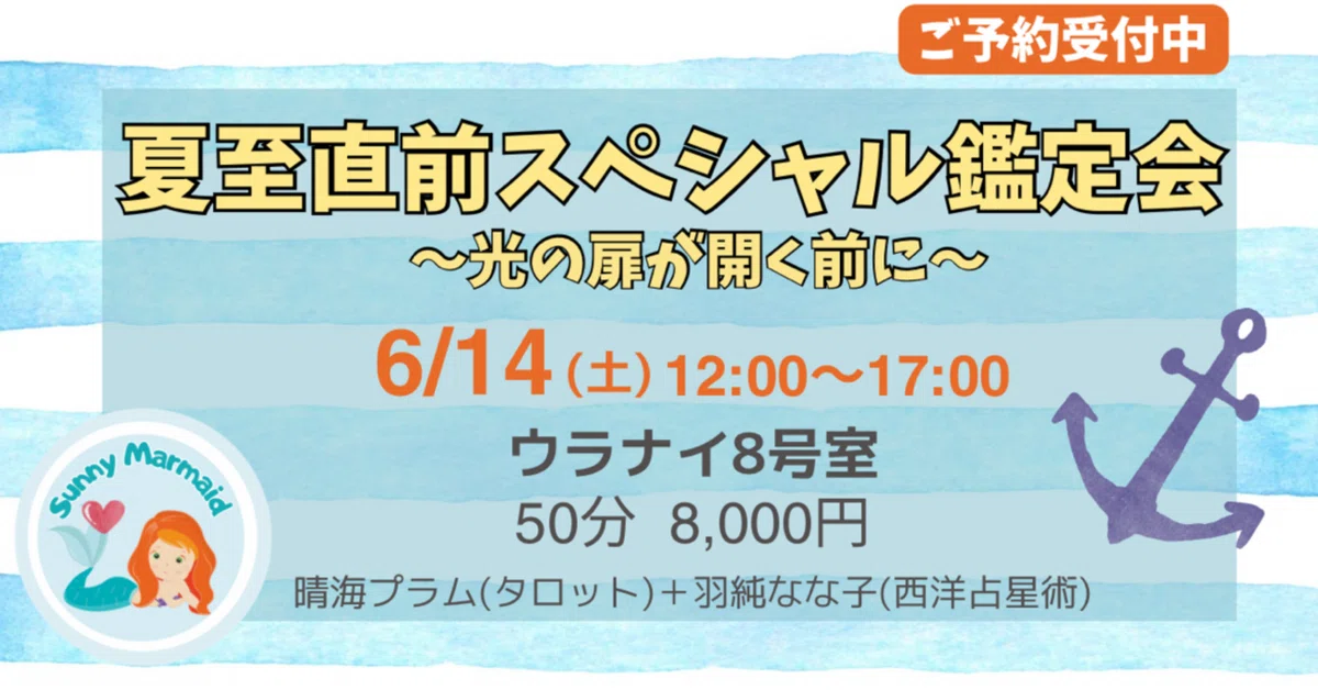 「夏至直前スペシャル鑑定会〜光の扉が開く前に〜」を開催いたします。