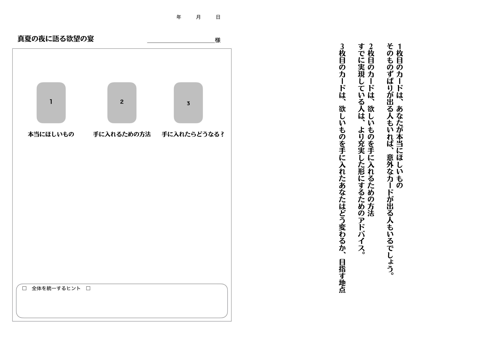 こちらが翡翠先生考案の欲望3枚引きスプレッド。