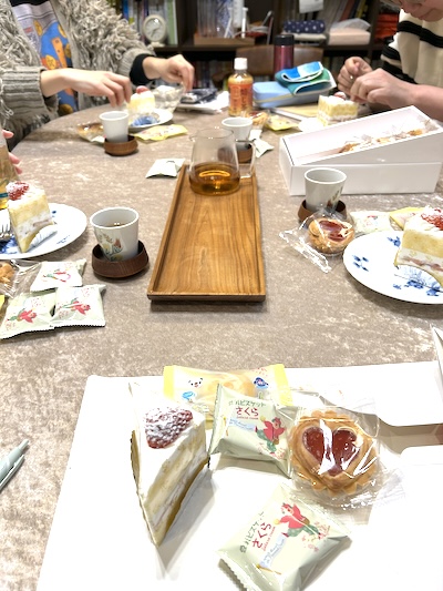 さりげなくあちこちから立派なおやつが現れて、みんなで嬉しく楽しく「ハッピーバースデー」の歌を歌って、打ち合わせもしてなかったのに、ちゃんとバーチャルロウソクがどこからともなく現れました。ふふふ。みんなさすがです。いくつになってもお誕生日祝いっていいものですね。