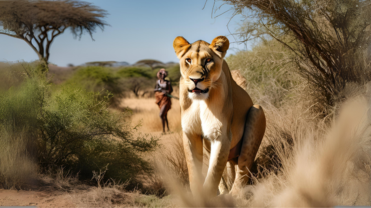 巨大なメスライオンが、しゃがんでもりもりと健康そうなピカピカのウ○コをしています。ちょっと眉間にしわをよせて、私の腕くらいある巨大なのがもりもりでてくる。すごい生命力!